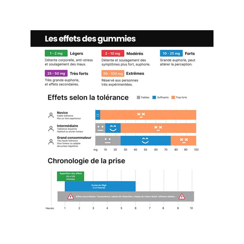Commencer par un gummy, puis attendre la montée avant d’envisager un deuxième